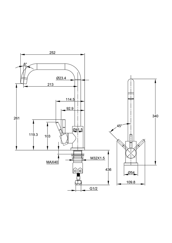 Смеситель для кухни COMO с п-образным изливом сатин