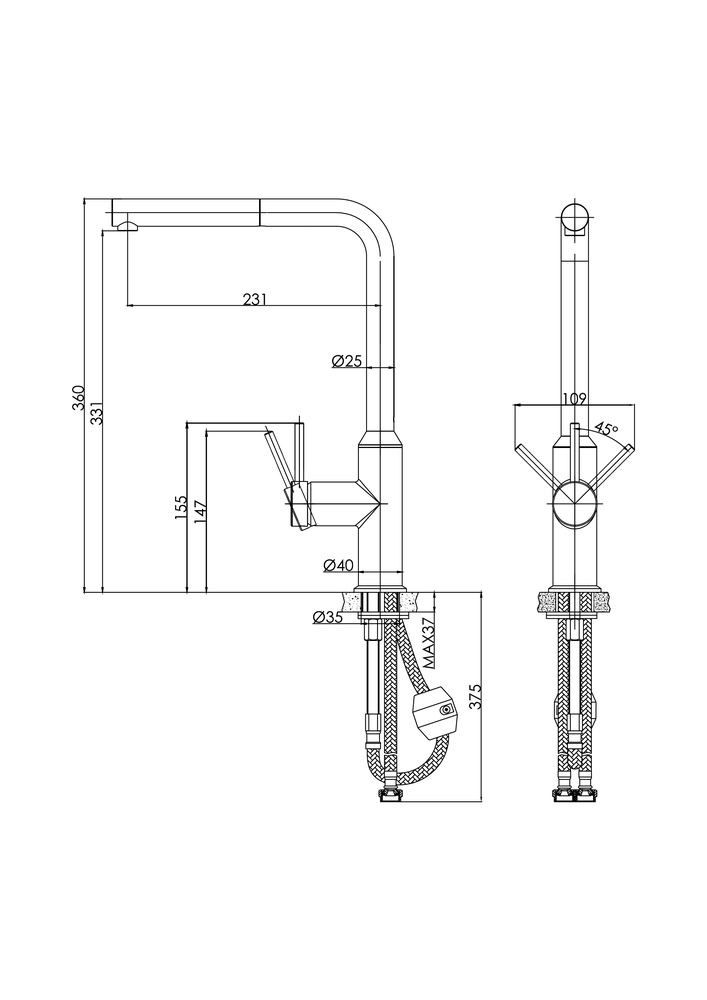 Смеситель для кухни FLAVIS с выдвижным изливом сатин
