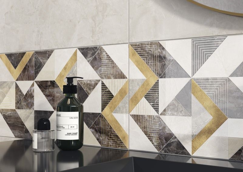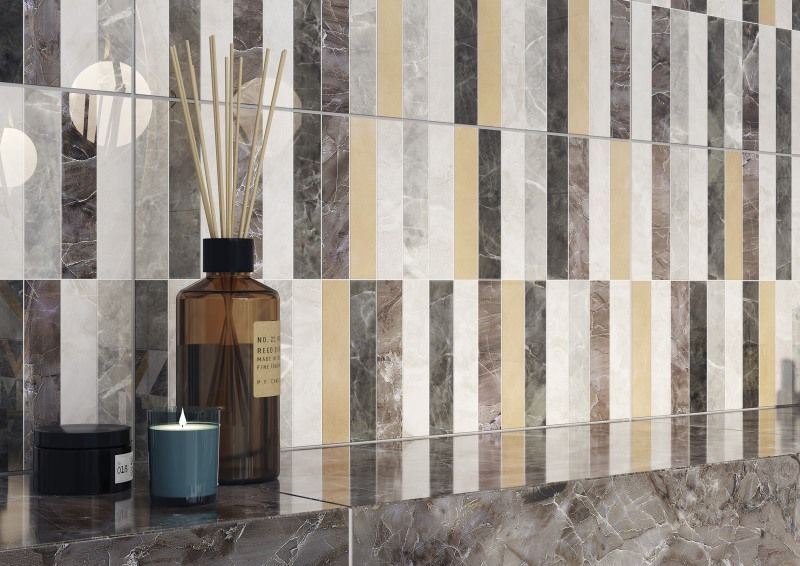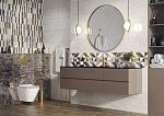 Коллекция настенной плитки LANDSCAPE 30х60, словно настоящий пейзаж, окутывает теплом благодаря натуральным оттенкам бежево-коричневой гаммы. Мраморные базы контрастируют, но находятся в гармонии. Их объединяет общая текстура, что создает единое полотно на стене. Два вида декоративной плитки позволяют художественно обыграть пространство. Плитка, набранная из маленьких прямоугольных пластин разнообразных вариантов мрамора, стильно сочетается с декорами с эффектом мерцания. Теплоты интерьеру добавляют «керамогранитные доски» на пол формата 22х90.