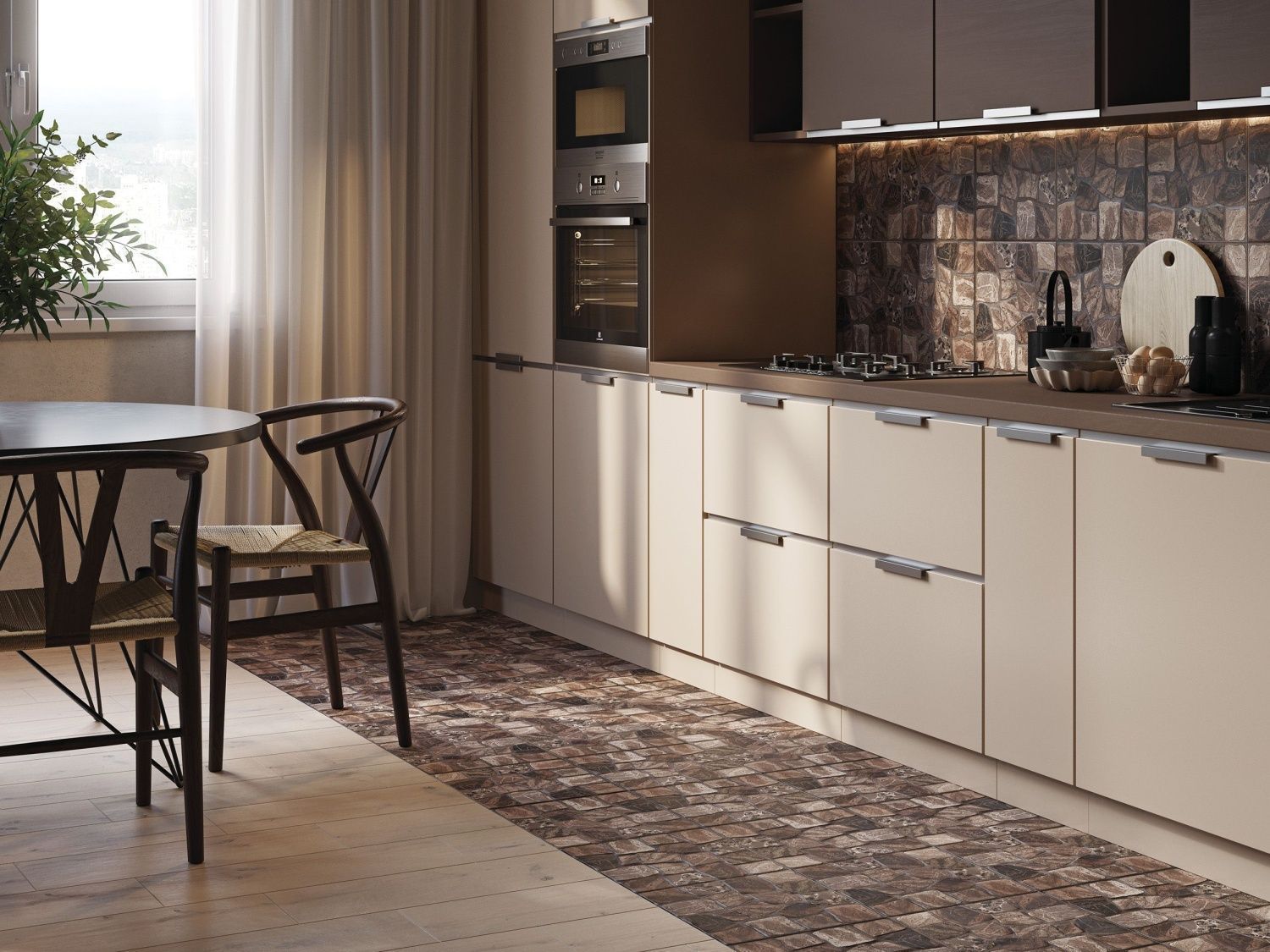 Поверхность керамогранита из коллекции SANDWOOD точно воссоздаёт сложную фактуру натуральной древесины. Для каждого цвета разработано несколько уникальных графических решений, что позволяет придать полу естественный вид. Светлый тон серии подойдёт для минималистичных скандинавских интерьеров, а более тёмные и насыщенные — для интерьеров в английском стиле. SANDWOOD можно использовать для оформления кухни, гостиной, холла, террас или балконов.