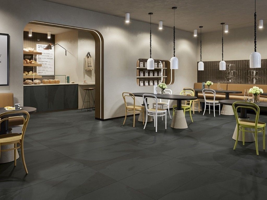 В цвете ARDESIA Блэк особенно ярко проявляется многослойная фактура сланца. Эффектный дизайн в сочетании с непревзойденными характеристиками керамогранита делают его идеальным отделочным материалом как для жилых, так и для коммерческих помещений, где важны высокая износостойкость и долговечность покрытия.