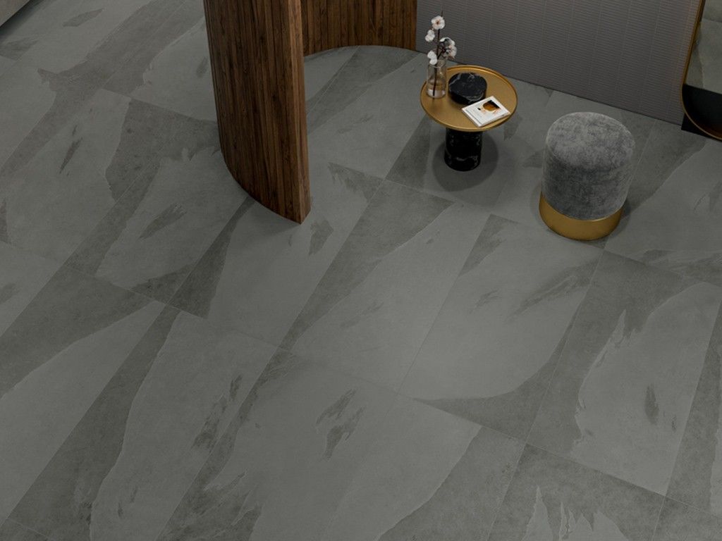 Цветовые переходы и полутона ARDESIA Грэй воплощают в себе энергию натурального сланца. Идеальный баланс серых оттенков подчеркивает динамичность текстуры керамогранита, добавляя выразительности и индивидуальности современному пространству.