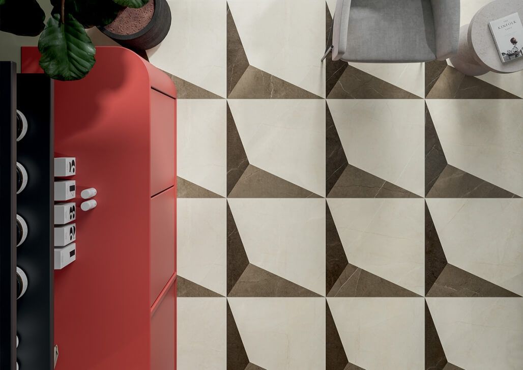 Гамма благородных оттенков мрамора коллекции FIAMMA дополнена эффектной вставкой Фрейм. Геометрический трехцветный орнамент на плитке поможет создать яркий и стильный образ интерьера. Впервые Coliseum представляет декор в квадратном формате 60х60, который можно укладывать на пол и на стены, придавая пространству выразительности.