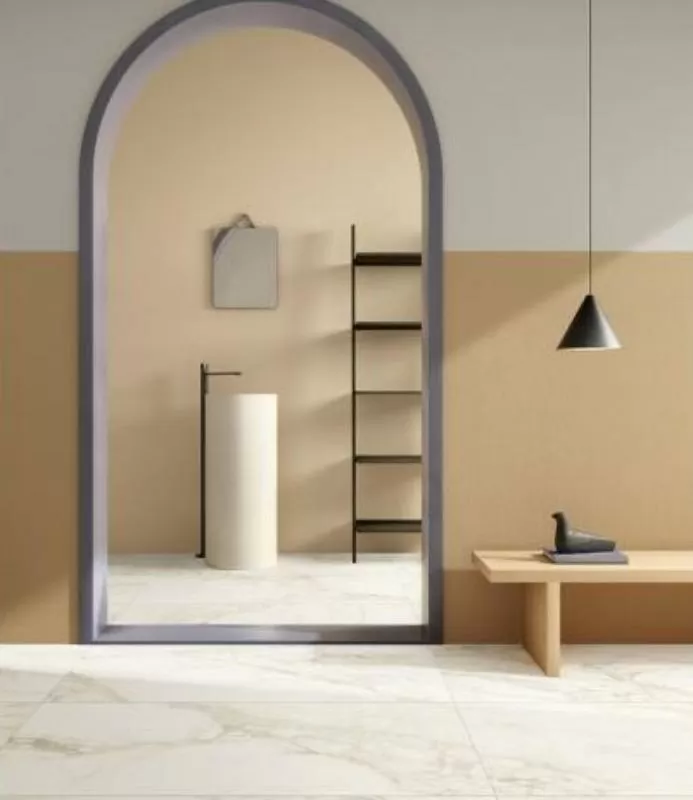 Michelangelo Ворм вдохновлен мрамором Calacatta Bellini. Нежная изящная графика с изысканными золотистыми прожилками на теплом белом фоне создаст в интерьере атмосферу гармонии и уюта.