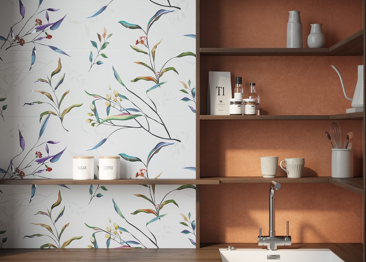Белый мрамор и красочные растительные мотивы сплелись воедино в комплекте настенной плитки Grace. Мраморную текстуру дизайнеры предлагаю использовать в качестве базы, а декоративную вставку с флоральным узором Grace Voyage — в качестве красивого и живописного акцента. Рисунок декора выполнен так, что немного напоминаем мраморные прожилки, за счет чего такие непохожие плитки отлично сочетаются друг с другом. Они имеют матовую фактуру, единый размер 30х90 см и ректифицированный край, благодаря чему можно создать монолитную поверхность с минимальными стыками.