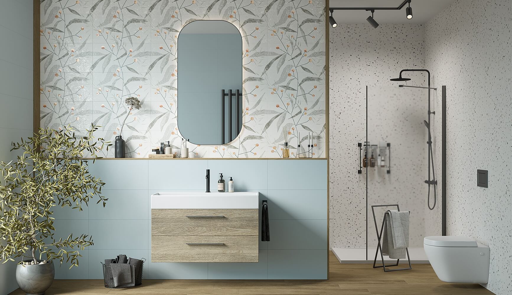 Создавая коллекцию керамической плитки Seventies, дизайнеры CRETO вдохновлялись цветовой гаммой и принтами семидесятых, где простые, немного наивные флоральные рисунки и орнаменты сочетаются с непременной классикой — плиткой терраццо, имитирующей плиту с добавлением колотого камня.