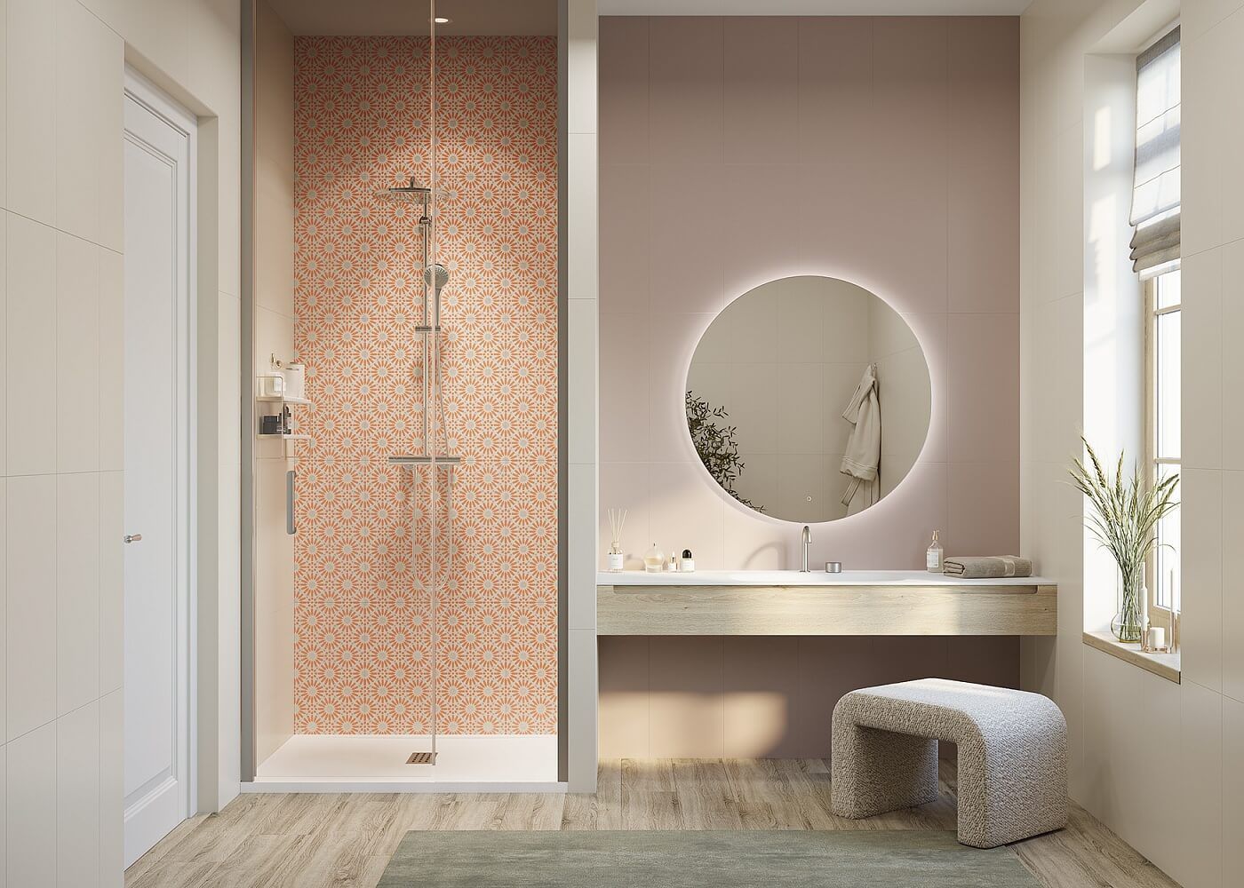 Яркая палитра коллекции и подобранные рисунки позволяют использовать эту плитку в интерьерах в стиле ретро, эклектика и, конечно, mid-century modern в сочетании с винтажной мебелью и сантехникой.