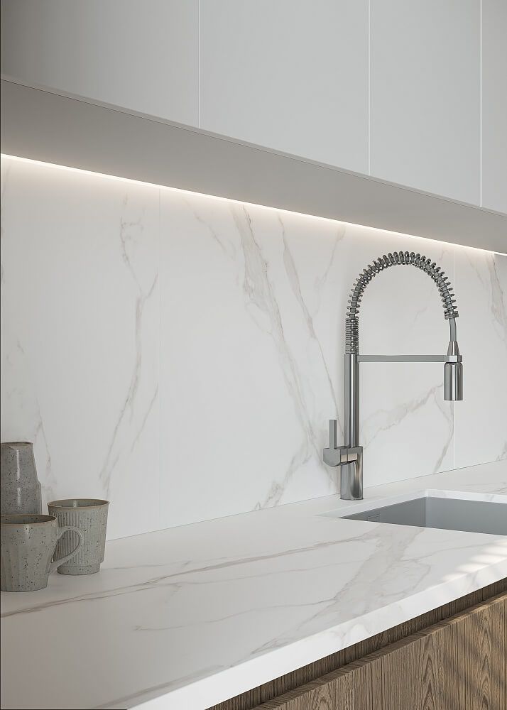 В коллекции представлен керамогранит под мрамор с полированной глянцевой и матовой сатиновой поверхностью. Обе фактуры представлены в размерах 60х120 см и 80х160 см. Керамогранит из коллекции Statuario Cara имеет коэффициент износостойкости PEI IV, так что его можно укладывать в любых жилых помещениях, включая холлы, коридоры, лестницы, веранды и крыльцо, а также в общественных пространствах: гостиницах, ресторанах, магазинах. Ректифицированный край и крупный формат плит позволяют создать эффект монолитной поверхности с минимальным количеством стыков.
