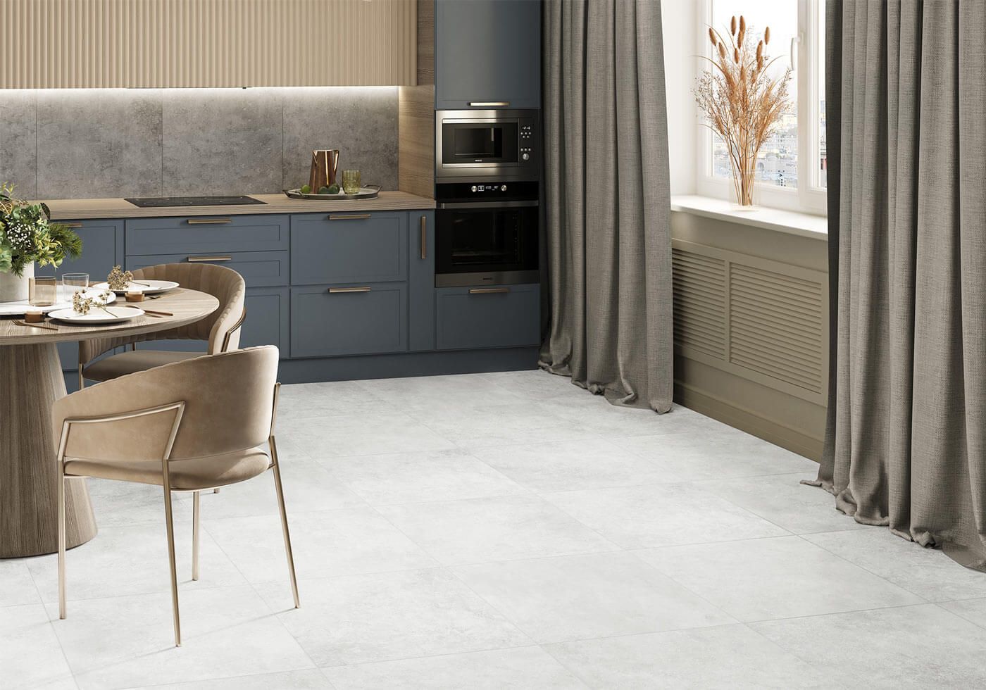 Матовая многоцветная металлическая текстура формата 600×1200 мм дополнена глянцевым спецэффектом deep-ink, он усиливает глубину и реалистичность графики. Коллекция подойдет для таких стилей как лофт, хай-тек, минимализм. Но несмотря на свою строгость и брутальность эта серия обладает приятной обволакивающей теплой гаммой, которая в сочетании с деревянными акцентами создаст уютный интерьер.