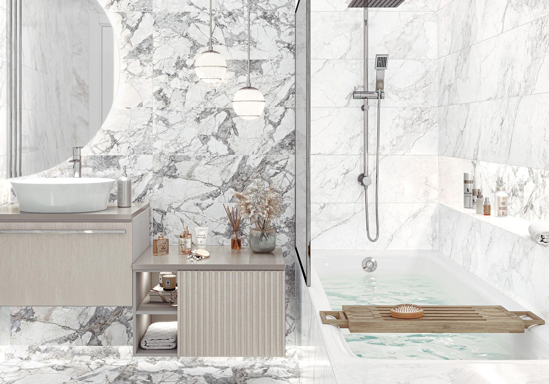 Глянцевая ректифицированная коллекция настенной плитки Faenza в формате 246×740 мм — это текстура оригинального мрамора Cote D'Azur. Такое необычное название камня появилось из-за того, что цвет и рисунок мрамора вызывают ассоциации с лазурным берегом Средиземного моря. Яркие серо-голубые природные узоры этого камня на белоснежном фоне дополнят металлические бордюры коллекции. Природные цвета наполнят помещение светом, визуально расширяя его.