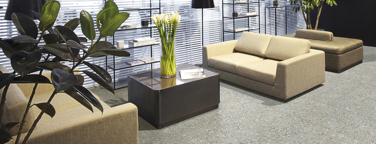 Агломерированный материал по праву завоевал популярность в 20 веке. Именно поэтому интерьеры многих знаменитых гостиниц, отелей, вокзалов и аэропортов украшены данным материалом. Керамогранит из коллекции «Aglomerat» ) максимально точно имитирует фактуру натурального материала. На сегодняшний день агломерат вновь становится популярным благодаря своим техническим характеристикам, высокой износостойкости, простоте и лаконичности стиля.