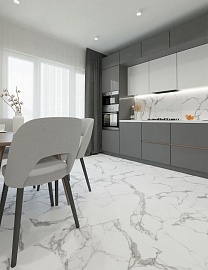 Неповторимая структура мрамора очаровывает многих дизайнеров своей красотой. Коллекция Avery привлекает внимание своей текстурой. Молочный фон плиты пронизан широкими прожилками, чередующиеся с сетью из тонких и извивистых линий. Крупный формат керамогранита и большое количество окон позволяет создать сложный и индивидуальный рисунок на стене. Коллекция идеально гармонирует с деревом, камнем, металлом и позолотой, при этом не перетягивает внимания на себя, а лишь создает небольшой акцент. Керамогранит Avery прекрасно впишется как в классические, так и в современные интерьеры.