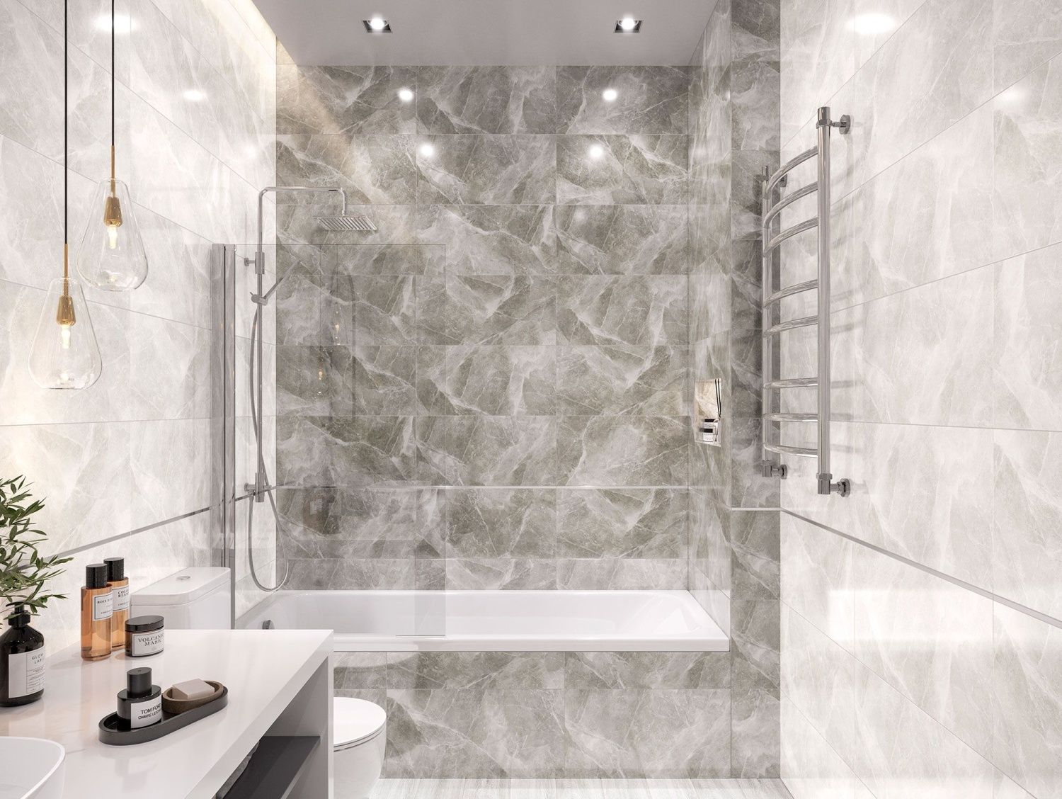 Коллекция плитки Futuris – это благородное сочетание мрамора двух оттенков серого. Монохромный фон плит оживляет сеть белых туманных прожилок. Глянцевая поверхность подчеркивает динамичный рисунок, отражая свет и делая помещение визуально просторнее. Темно-серая плита будет идеальным решением для акцентной стены или для зонирования части пространства.