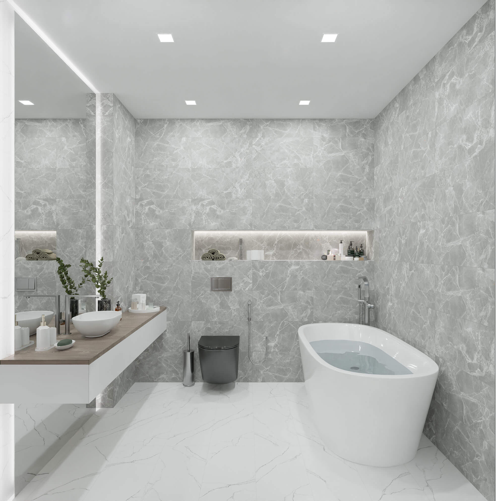 Коллекция Pride построена на сочетании белого и серого мраморов. Красота и благородство натурального камня с его выразительными серыми и белыми прожилками, подчеркнутыми глянцевыми чернилами, добавит интерьеру изысканности и элегантности. Керамогранит Pride прекрасно раскроется в интерьерах в неоклассическом стиле. Благодаря высокой прочности, износостойкости, морозостойкости и низкому водопоглощению керамогранит Pride можно использовать как внутри помещения, так и снаружи. Для законченности интерьера мы предлагаем использовать керамический бордюр с хромированным напылением.