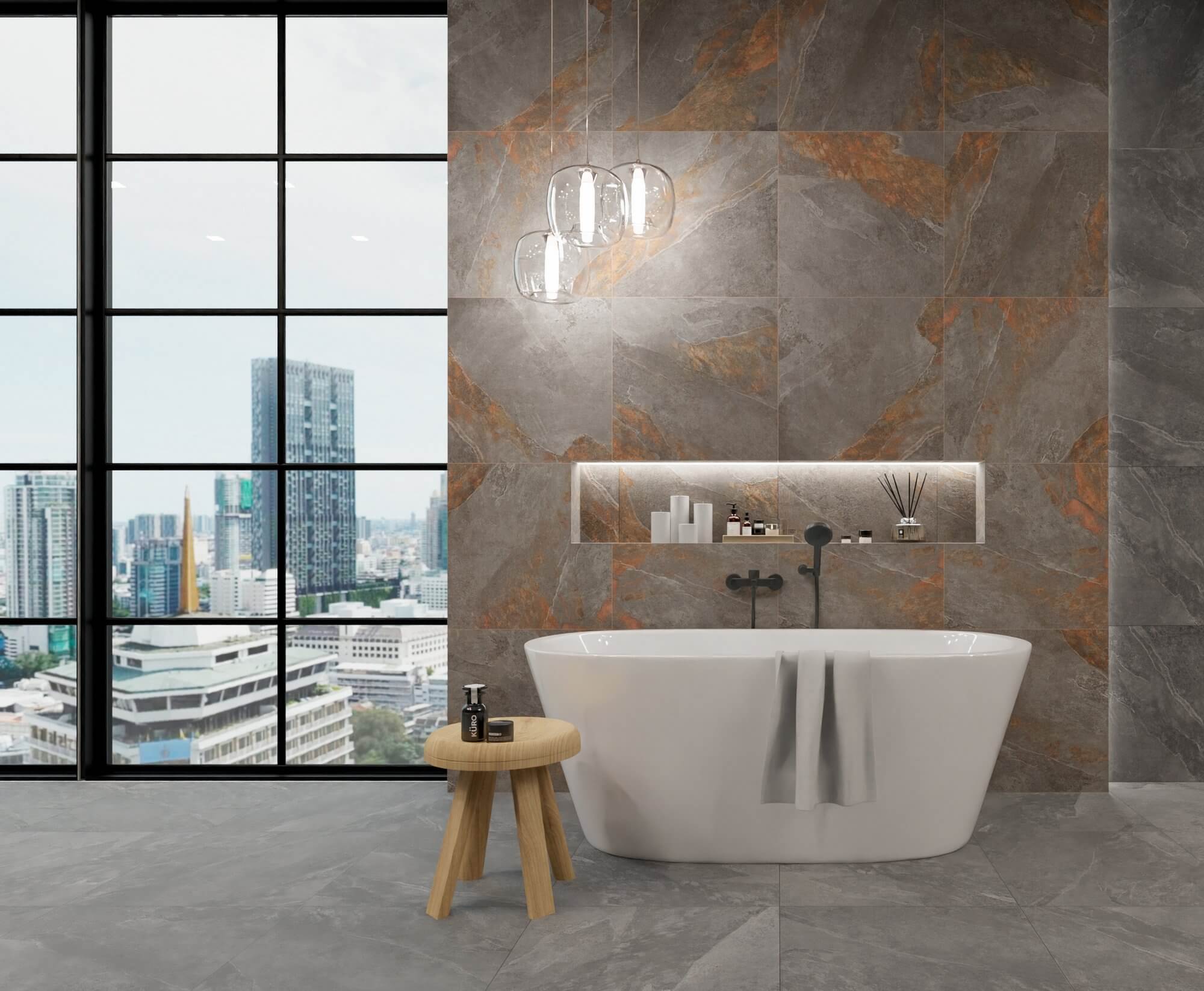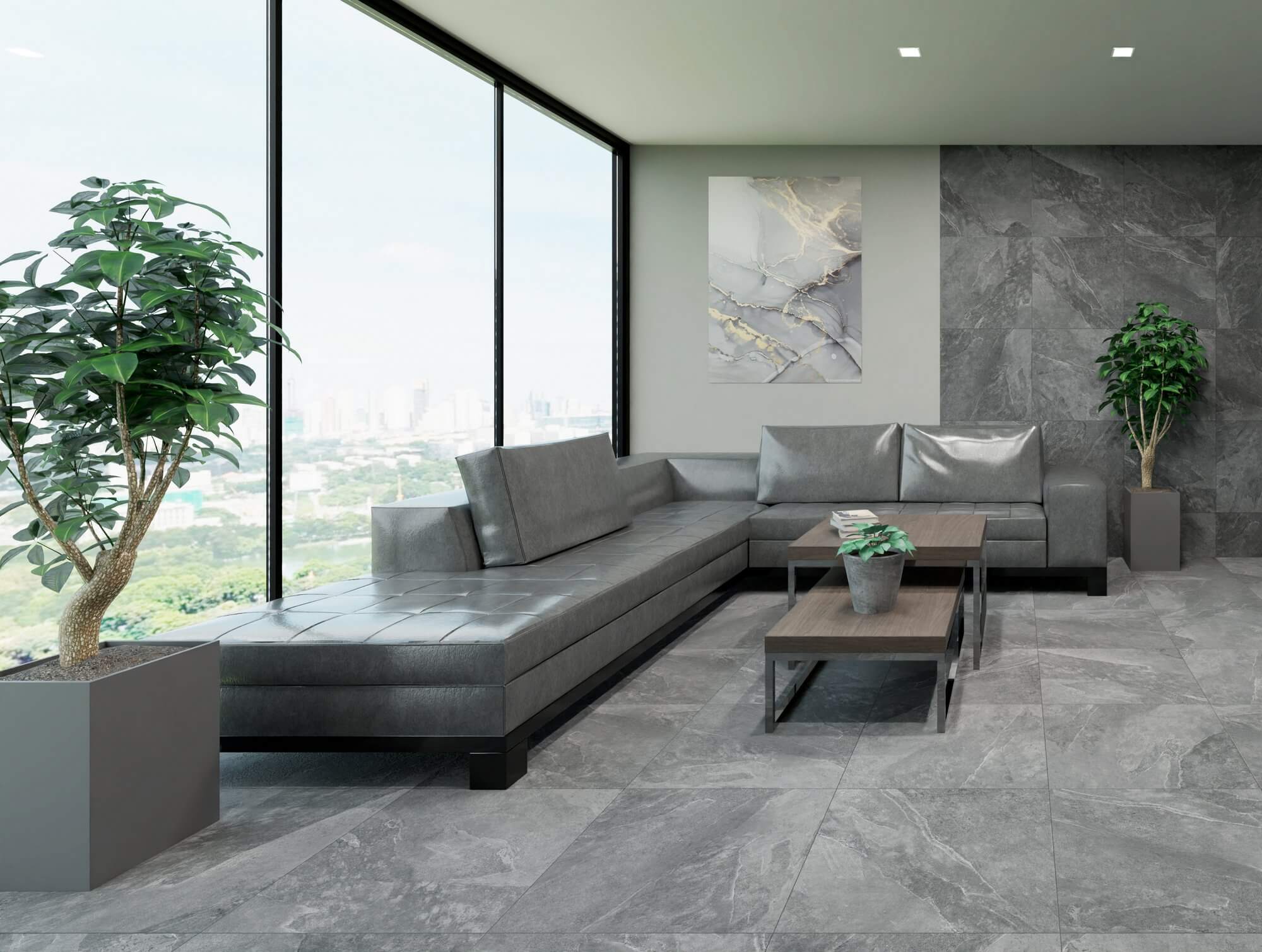 Коллекция Rocket - это застывшая структура вулканической породы, которая с точностью воспроизводит рельеф и неровности природного камня. Такая фактура керамогранита в сочетании с темными оттенками серого и коричневого добавляют в интерьер сдержанности и строгости, поэтому он прекрасно подойдет для оформления гостиных, каминов и кабинетов.