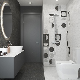 Лаконичная коллекция Sparkle вобрала в себя шедевральную неповторимость венецианского терраццо и атмосферный подход к декору. Базовые плиты в темно-сером и светло-сером исполнении идеально сочетаются между собой, завораживая калейдоскопом вкраплений. В качестве декора выступают плиты с тонкими продольными полосами, напоминающими отметины от воды на морских скалах. При всей сдержанности рисунка и палитры коллекция Sparkle выглядит по-настоящему ярко и по-современному стильно, позволяя создавать минималистичный, но насыщенный современный дизайн.