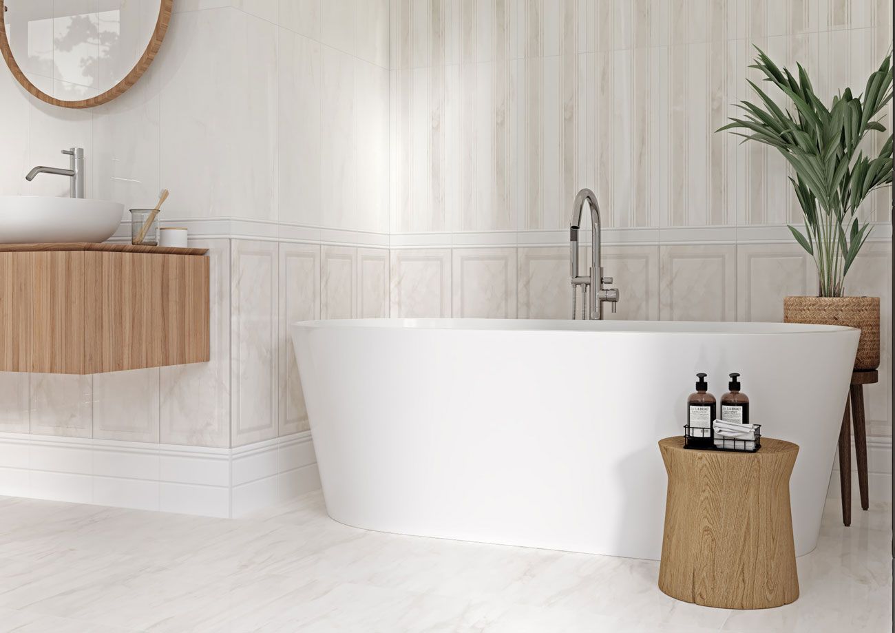 Лира / Lira от Gracia Ceramica - коллекция керамической плитки для ванной комнаты. Мрамор, строгий рельеф и растительный паттерн: немеркнущая классика коллекции Lira всегда в тренде! Нежные оттенки беж, глянец, имитация натурального мрамора и обоев с микрорельефными орнаментальными полосами – все отсылает нас к дворцовым интерьерам. Акцент коллекции – вставка с металлизированным цветочным узором, которую можно стыковать во все стороны, увеличивая размер декора, а дополнительные элементы – глянцевые плинтус и бордюр – позволяют создать практичный и индивидуальный интерьер как в жилых помещениях, так и в общественных пространствах. П/p>