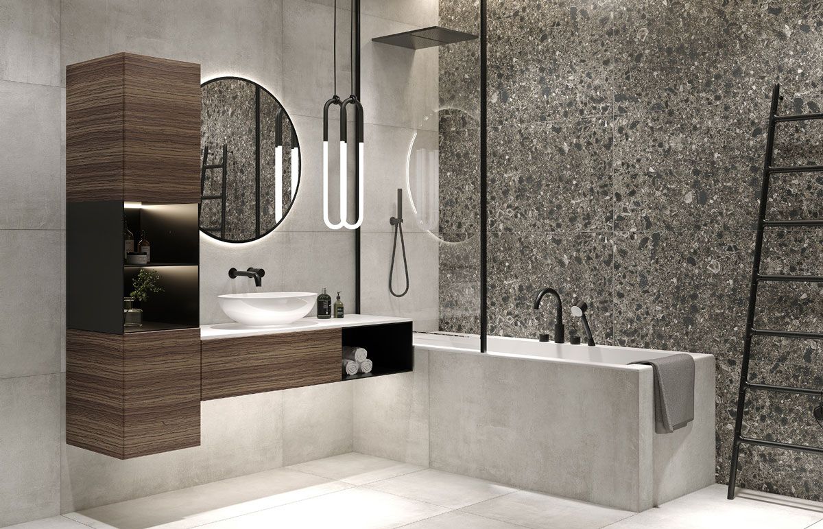 Оформление элементов интерьера поверхностями с текстурой бетона является трендом в дизайне на сегодняшний день. Его фактура и серые тона, искусно соединенные с деревом, стеклом и камнем, позволяют создать современные интерьеры в стилях лофт, минимализм, хай-тек, индустриализм, конструктивизм. Казалось бы, проще оставить бетонные стены необработанными, а не покрывать их финишными покрытиями, имитирующими этот бетон. Но в таком случае в помещении будет отсутствовать тепло- и гидроизоляция, на стенах возможно образование конденсата, коррозии, грибка и плесени, что сделает дом непригодным для проживания. Но керамогранит с эффектом бетона коллекции Beton не отличим от шлифованного бетона и при этом абсолютно экологичен, практичен и долговечен.