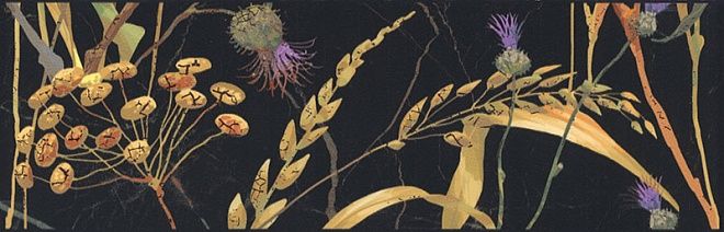 SST\A03\12000R Астория Птицы черный обрезной бордюр 25*8 , Керама Марацци