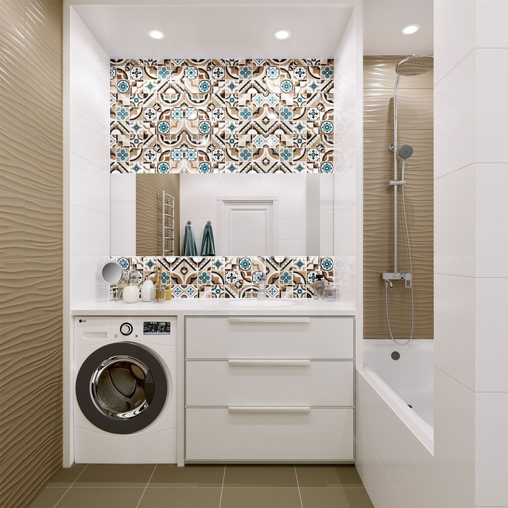 Дюна от Керамин - коллекция керамической плитки для ванной комнаты, кухни и кухонного фартука. коллекцию включены настенная плитка белого, черного, бежевого и бирюзового цветов, гладкая и с волнистым рельефом, декоры с рисунком узоров пэчворк и в полоску. Настенная плитка имеет глянцевую поверхность.