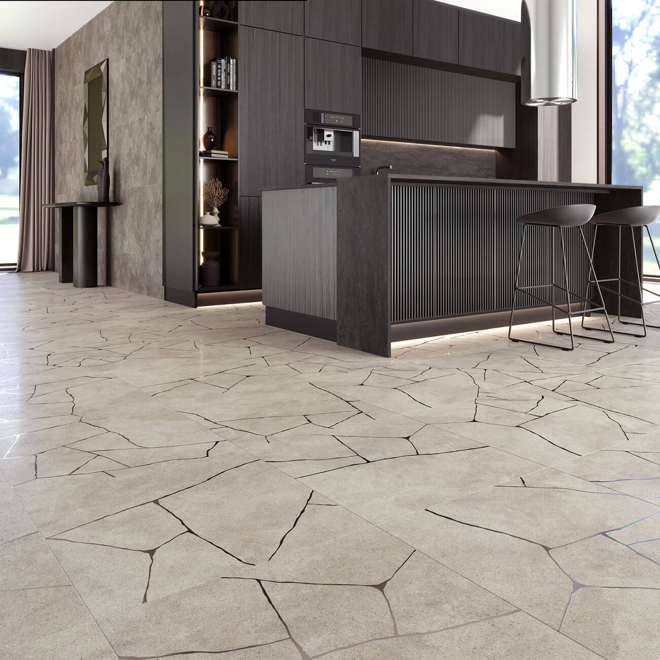 Судьба непредсказуема: она может повернуть дорогу жизни в любую сторону, разделить её на «до» и «после». Элемент судьбы, внезапный поворот — вот что вдохновило нас на создание коллекции керамогранита ФЭЙТ, графика которой так же причудлива, как и линии судьбы, разделяющие цельное полотно на фрагменты. Основная плитка коллекции ФЭЙТ — это практически бесшовный холст в формате 600х600 мм с нейтральной текстурой бетона. В декоре же полотно базы дополняется хаотичными прожилками — тут и начинается магия. «Линии судьбы» причудливым образом формируют невероятные узоры, которые могут стать как фоном для происходящего действия, так и центральным образом интерьера.