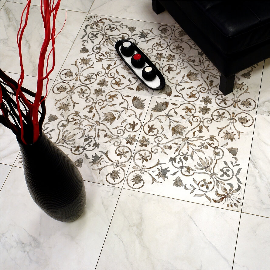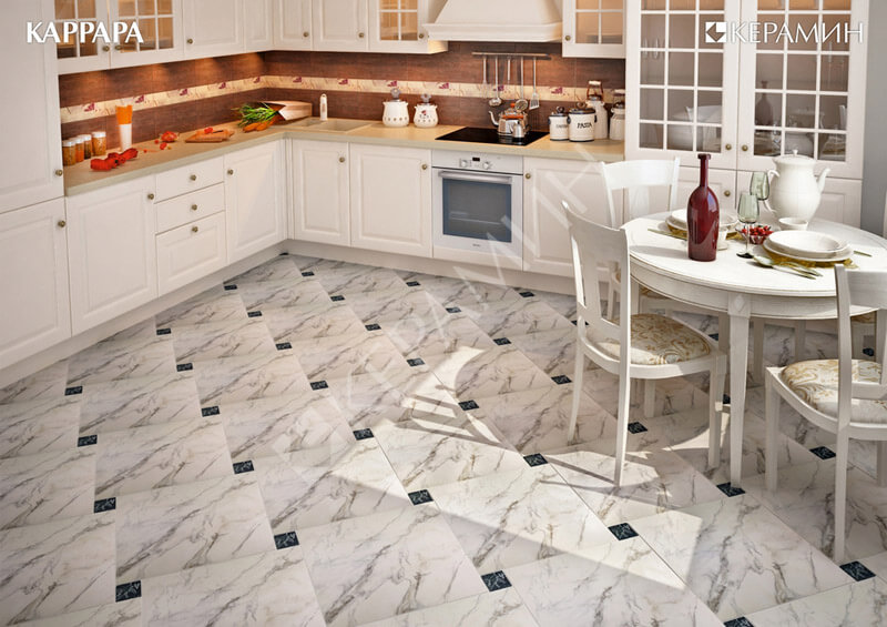 Каррара от фабрики Керамин - коллекция напольного глазурованного керамогранита формата 50х50 см под белый каррарский мрамор. Коллекция представлена в двух оттенках - бежевом и сером. Керамогранит Тинторетто имеет два вида плитки: - с фактурой благородного старого камня, - со старинным орнаментом на камне. Керамогранит тёплых, бежевых и коричневых тонов излучает атмосферу уюта и спокойствия. Керамический гранит Каррара имеет все соответствующие технические характеристики, обеспеченные отличным качеством Керамин.