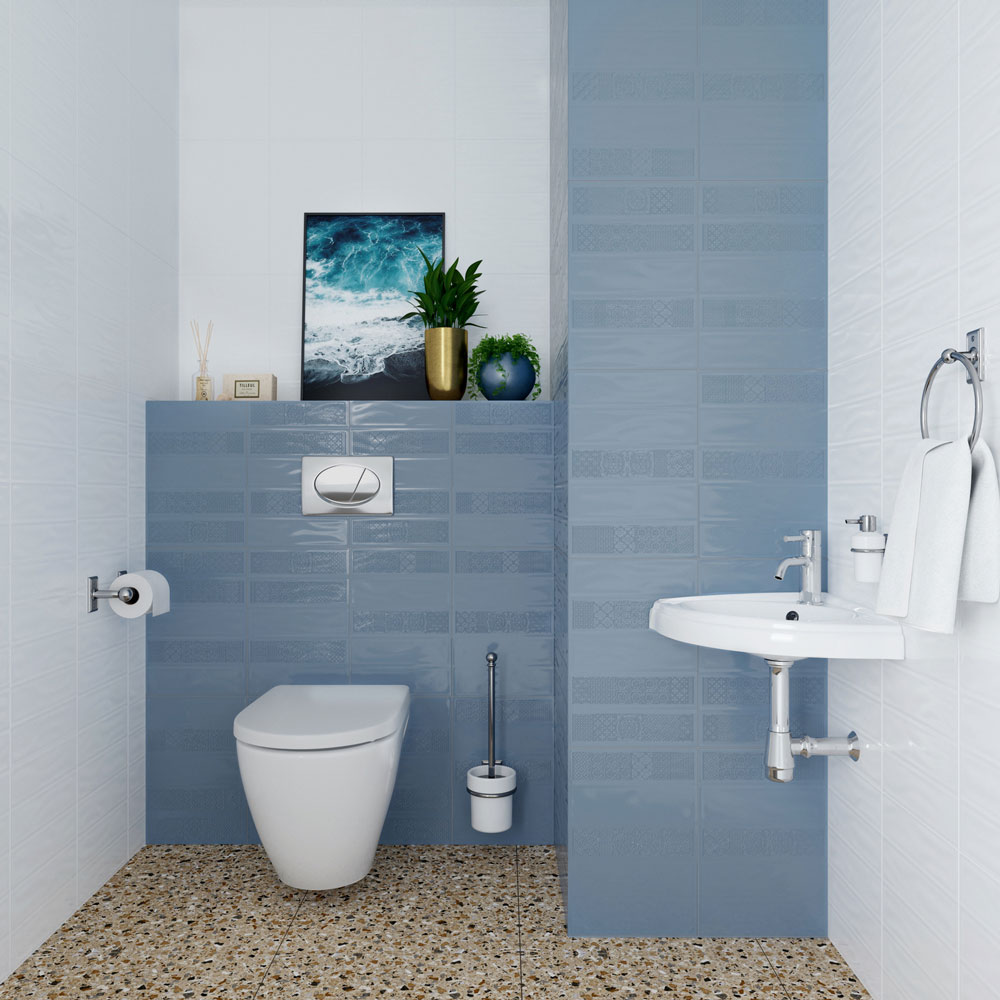 Метро от Керамин - коллекция керамической плитки для ванной комнаты. Урбанистический стиль мегаполиса лег в основу создания данной коллекции. Это яркая и стильная однотонная плитка формата 400х275 мм, которая имитирует популярный вытянутый формат укладки «метро». Три основных оттенка коллекции – бежевый, сине-голубой и аквамариновый объединены четвертым – белым, благодаря чему в одном интерьере можно не только использовать один цвет, а комбинировать сразу несколько. Специально разработанная структура плитки, разделенная на 5 частей, позволяет укладывать ее и горизонтально, и вертикально, в зависимости от стиля интерьера. Плитка Метро имеет глянцевую поверхность.