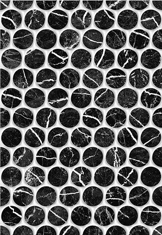 Настенная плитка Помпеи Помпеи 1 тип 1 27,5*40 см, черные круги на белом фоне, поверхность рельефная, глянцевая, под мрамор. Коллекция керамической плитки для ванной комнаты Помпеи (Керамин).