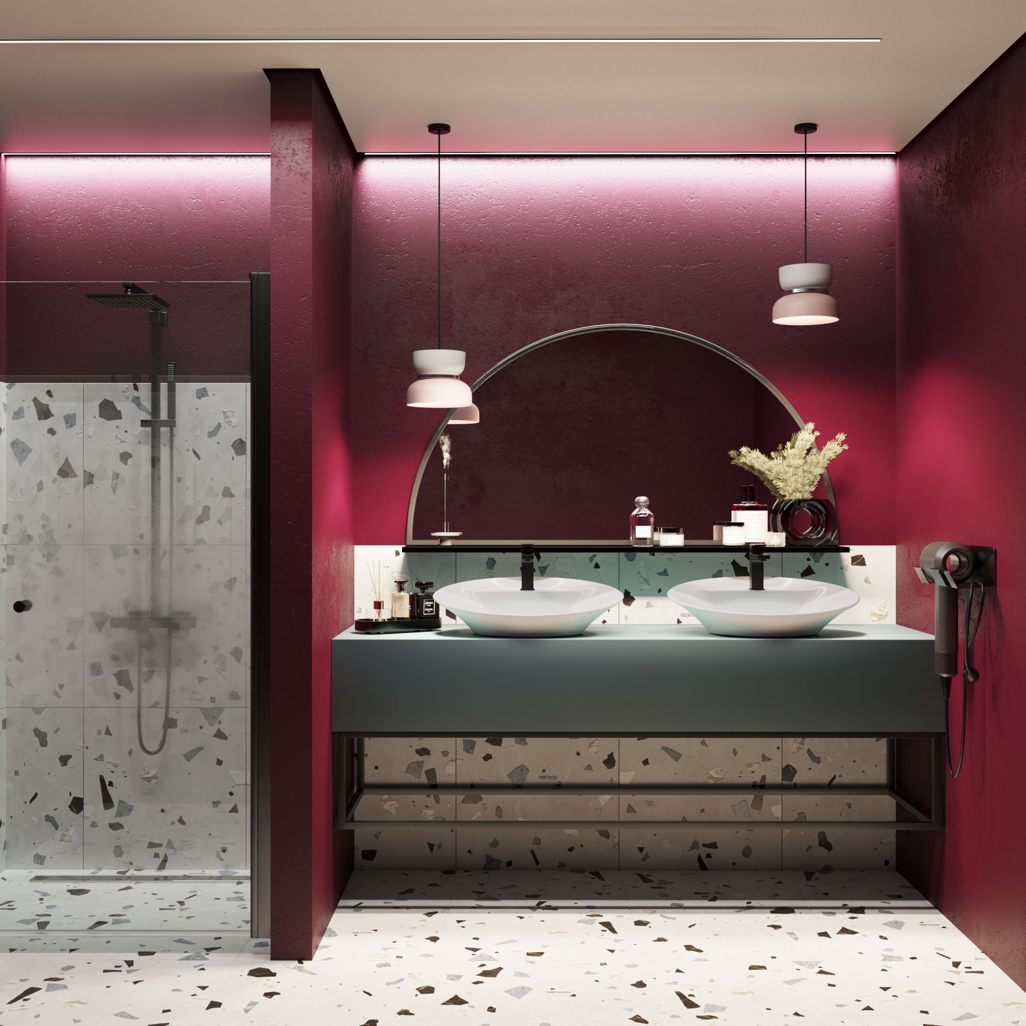 Базовая плитка 600×600 мм наполняет интерьер глубиной и цветом, проявляя всю их силу в абсолюте. И лишь осколки камня, мрамора и стекла в декоративной плитке напоминают о том, что ничто во Вселенной не бывает абсолютно.
