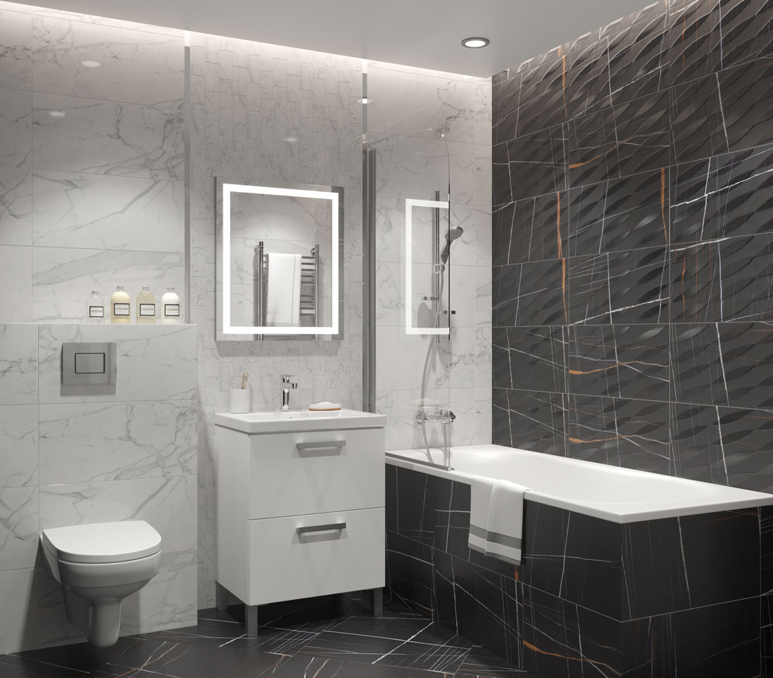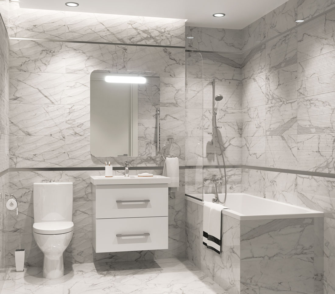 Марбл Тренд / Marble Trend от Kerranova - коллекция керамогранита 30*60, 60*60 под мрамор. В коллекцию Marble Trend вошли самые знаменитые сорта мраморов – белоснежные CARRARA (K-1000) с серыми прожилками холодных тонов и CALACATA GOLD (K-1001) с прожилками теплых оттенков серого. Сдержанный и универсальный кремовый CREMA MARFIL (K-1003) и насыщенный коричневый PULPIS (K-1002), как по отдельности, так и в сочетании позволяют создавать классические интерьеры, признанные во всем мире эталоном вкуса и утонченной роскоши. Для ультрасовременных интерьеров в стилях минимализма и хай-тек лучше всего подойдет глубокий черный цвет артикула NERO DORADO (K-1004), иссеченный серебристыми и золотистыми прожилками. Его благородное великолепие создает в интерьере атмосферу комфорта, солидности и аристократического очарования. Благодаря современным технологиям стало возможно широко использовать ранее недоступный и ограниченный в применении известняк, артикул LIMESTONE (K-1005). Его простая, лаконичная структура позволяет воплотить в жизнь проект в этническом или эко-стиле, ведь естественная гармоничная среда с привнесенным благородством – это «стихия» этого материала. Коллекцию Marble Trend пополнил еще один изысканный цвет мрамора – серый, Silver River. Его рисунок создается неоднородными прямыми или изогнутыми прожилками разной толщины, которые придают керамограниту легкость и утонченность. Silver River – это неповторимый шик и универсальность. Плитка имеет лаппатированный, структурированный и матовый варианты поверхности.