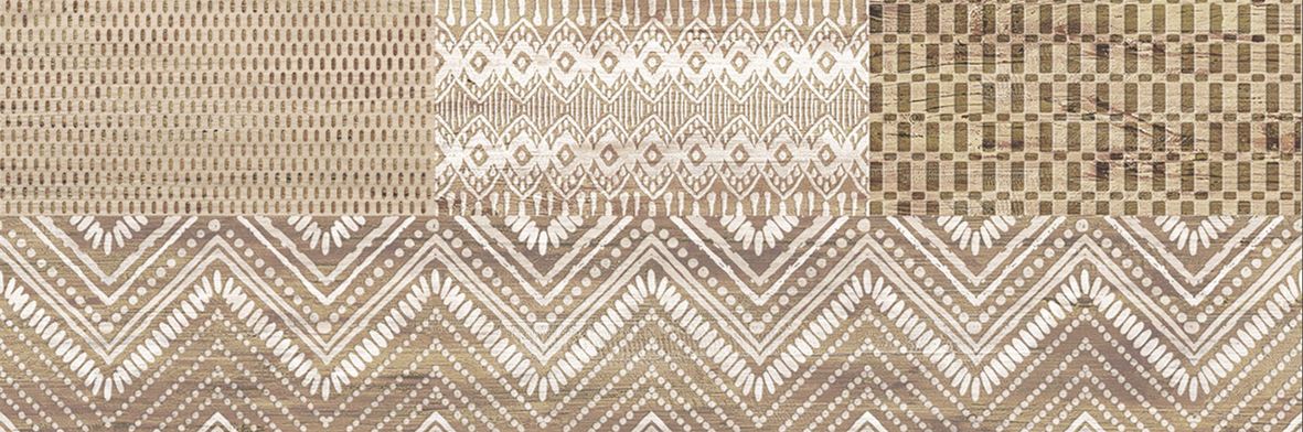 Настенное декоративное панно Amber 120x60 см, комплект из 6 плиток, фон под дерево, рельефный узор пэчворк. Коллекция керамической плитки для ванной Амбер / Amber (Laparet / Ceramica Classic).