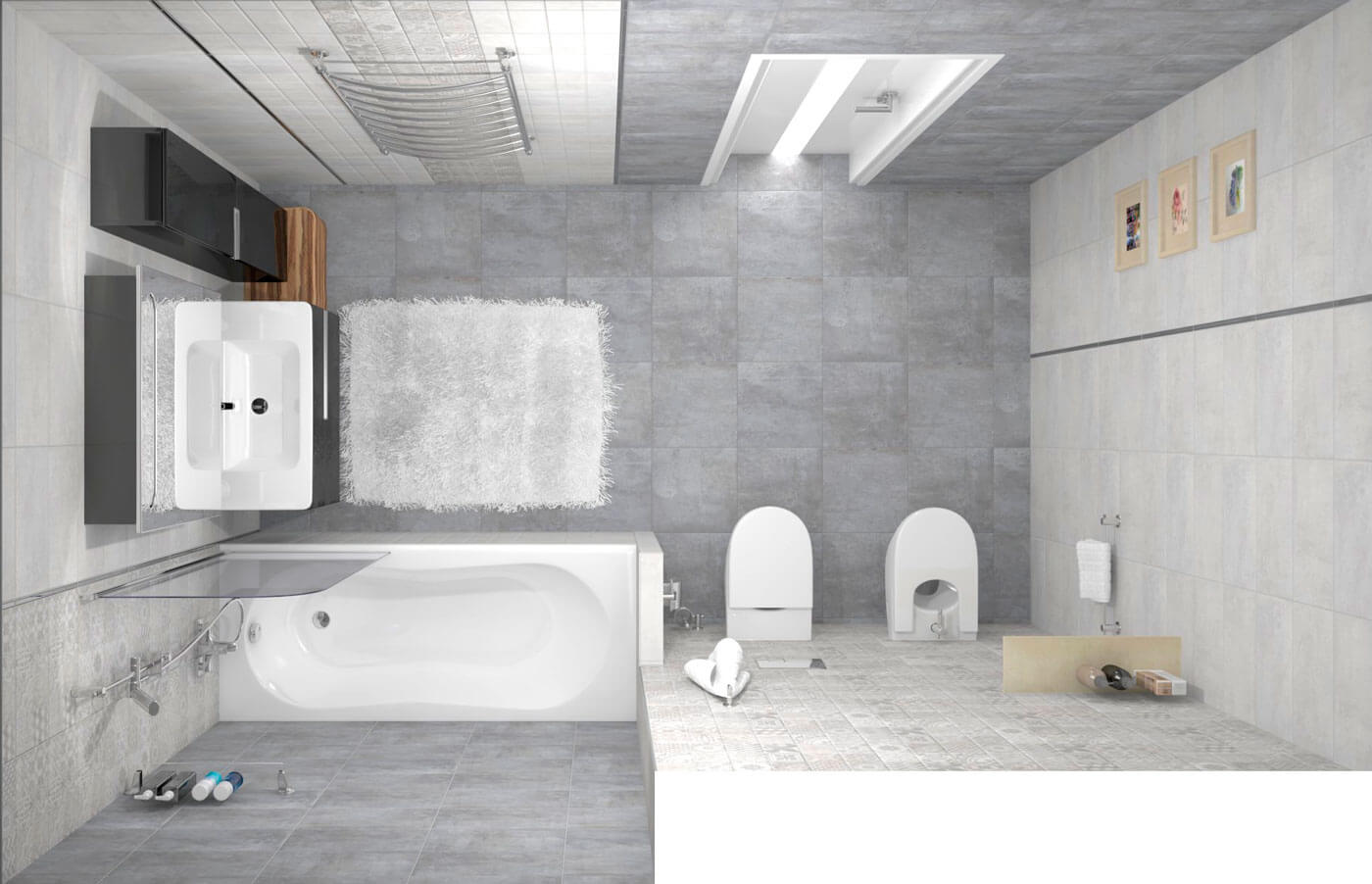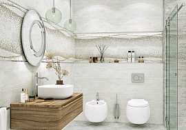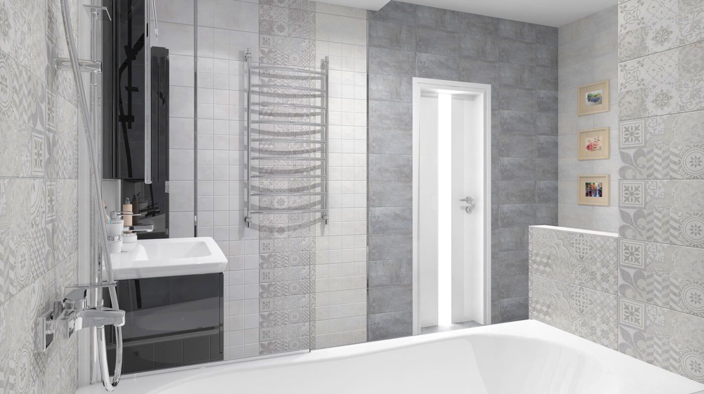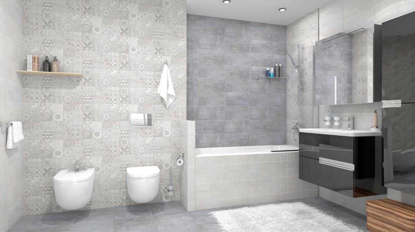 Bastion сер / Бастион серый от Laparet / Ceramica Classic - коллекция керамической плитки для ванной комнаты в оттенках серого цвета, с рисунком фоновой поверхности, напоминающим бетон или цемент, но в тоже время очень приятной на ощупь. В коллекцию включены настенная плитка 20х40 см, как фоновая, так и с узором в стиле пэчворк, декоры, напольная плитка 38,5х38,5 см. Плитка Bastion имеет глазурованную, матовую поверхность.