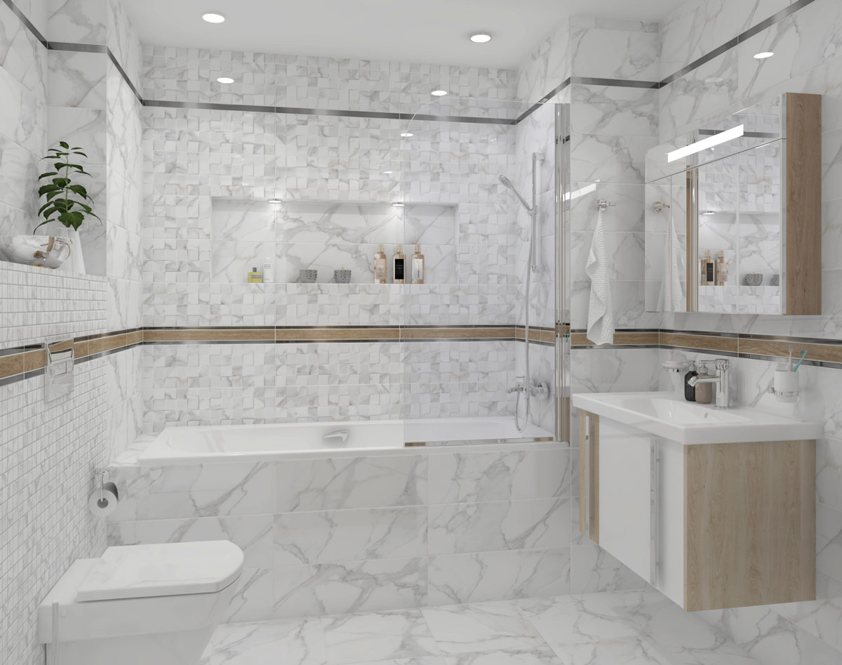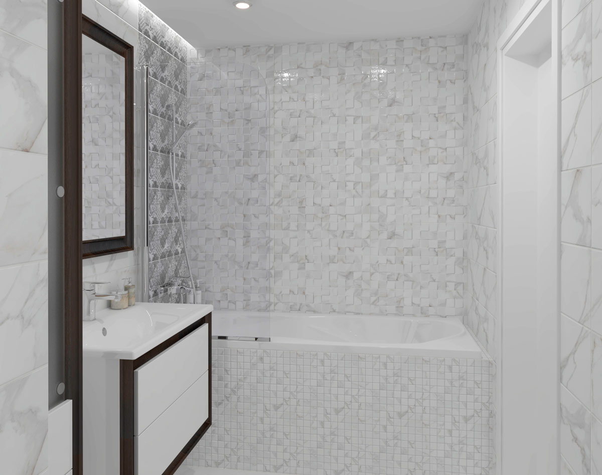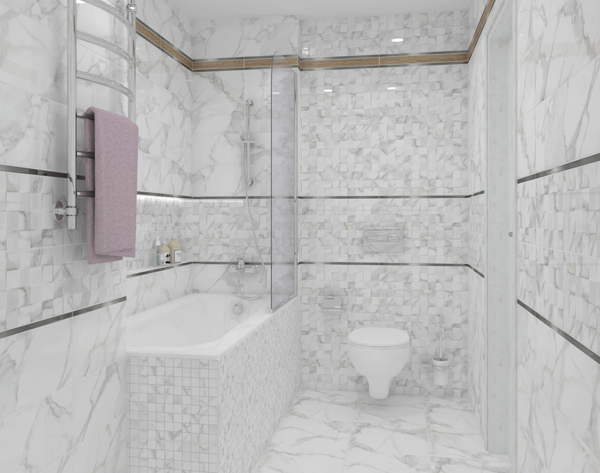 Кассиопея / Cassiopea от Laparet / Ceramica Classic - коллекция керамической плитки для ванной комнаты под мрамор в оттенках белого с серыми прожилками. В коллекцию включены настенная плитка 20х60 см, мозаичный декор, напольная 40х40 см. Коллекция Cassiopea от Laparet отличается красотой благородного классического мрамора, солидным и изысканным орнаментом декоров. Находясь в такой ванной комнате, вы будете чувствовать себя как в древне-греческом храме или героем мифологической поднебесной Олимпа. Плитка Cassiopea имеет глянцевую поверхность.