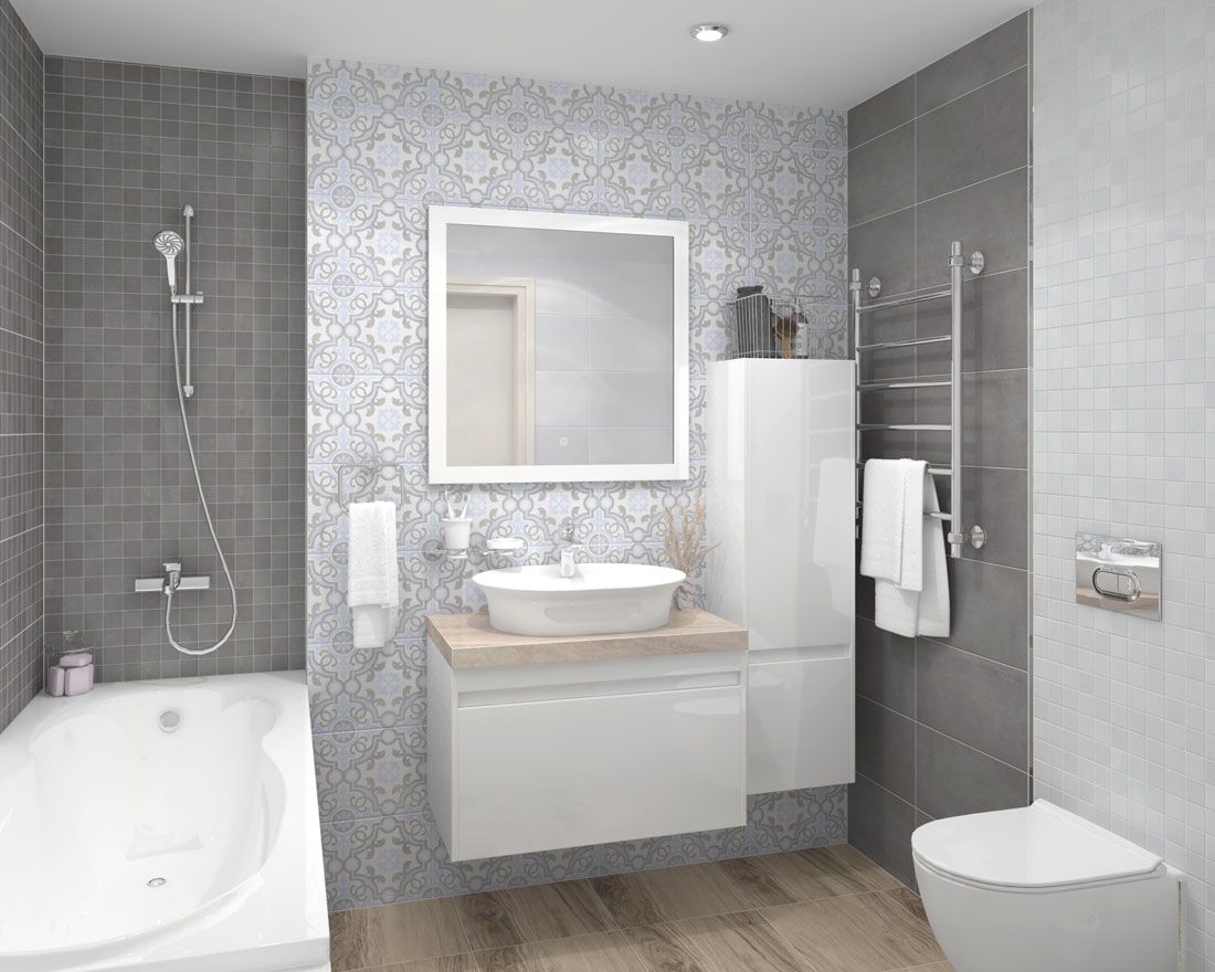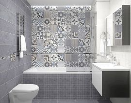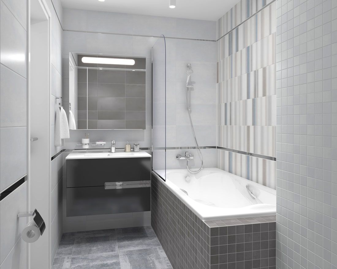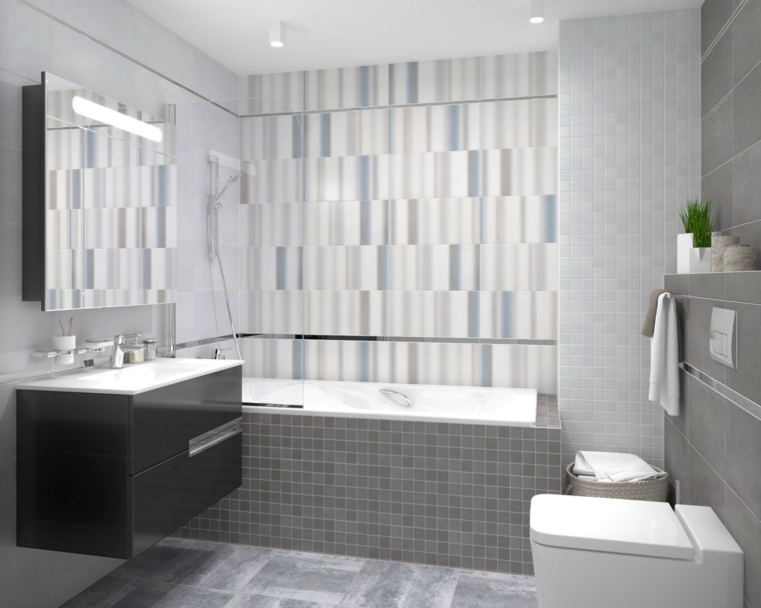 Депо / Depo от Laparet - коллекция керамической плитки для ванной комнаты, под бетон в оттенках серого. Настенная плитка коллекции имеет формат 25х50 см, напольная 40,2х40,2 см, настенная плитка имеет матовую поверхность.