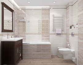 Электра / Elektra от Laparet / Ceramica Classic - коллекция керамической плитки для ванной комнаты, под камень в оттенках бежевого цвета. Настенная плитка коллекции имеет формат 20х60 см и глянцевую поверхность, напольная - формат 40,2х40,2 см, матовая.