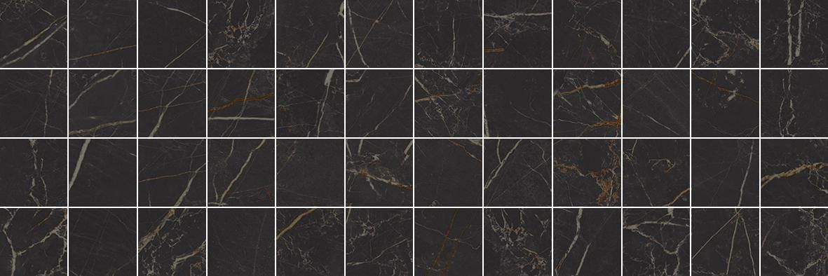 Настенная вставка, декор Royal мозаичный чёрный MM60074 20х60 см, поверхность глянцевая, под камень. Коллекция керамической плитки для ванной Royal (Laparet).