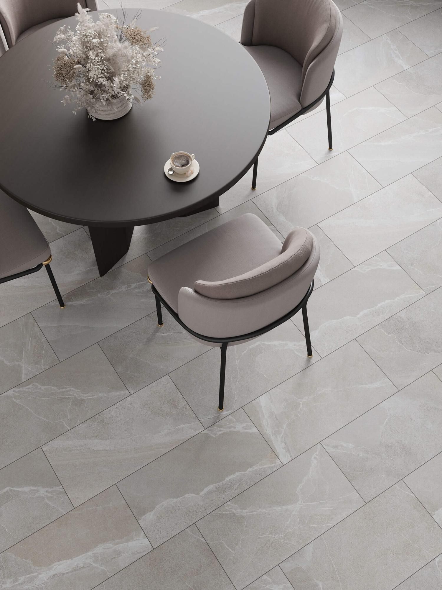 В текстурах Диккенса можно увидеть микс мрамора и песчаника, а оттенки от нежно-серого до антрацита помогают создать свой неповторимый интерьер. Однако, мы не рекомендуем использовать все три артикула в одном интерьере, а также сочетать 6260-0225 и 6260-0227 на одной поверхности.