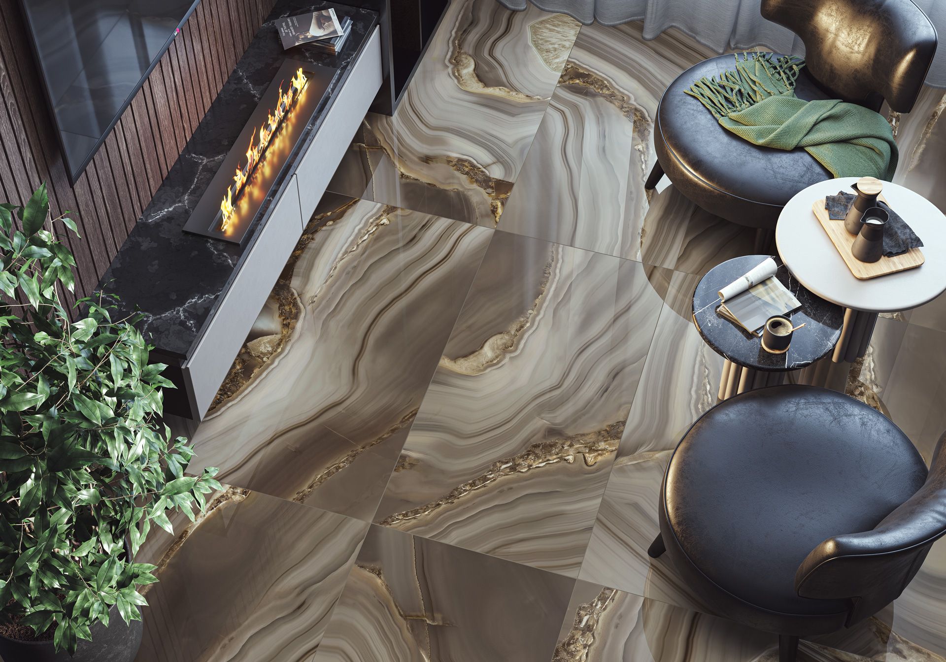 Эта коллекция создана удивлять! Керамогранит Wow — это текстура агата в благородном серо-коричневом оттенке. Оригинальный крупный рисунок смотрится роскошно в интерьере. Такой природный узор может украсить не только санузел, но и камин, зону TV или кухонное пространство, а также будет прекрасно смотреться на полу прихожей или гостиной. Гармоничным компаньоном из линейки бренда является керамогранит Snow Onyx.