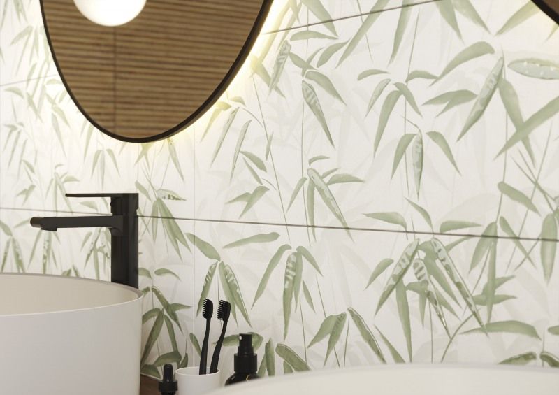 В основе концепции керамической плитки JAPANDI формата 25х75 — слияние философий дзен-минимализма и стильного скандинавского уюта. Европейско-азиатский фьюжн — это соединение функциональности и простоты, рукотворности и природной первозданности, интеграции интерьера и экстерьера. Базовая плитка в светлом бежевом и тёплом коричневом тонах дополнена декоративным панно с рисунком бамбука в технике «ручной работы». Завершить природный образ помогут «деревянные доски» керамогранита, уложенные на пол.