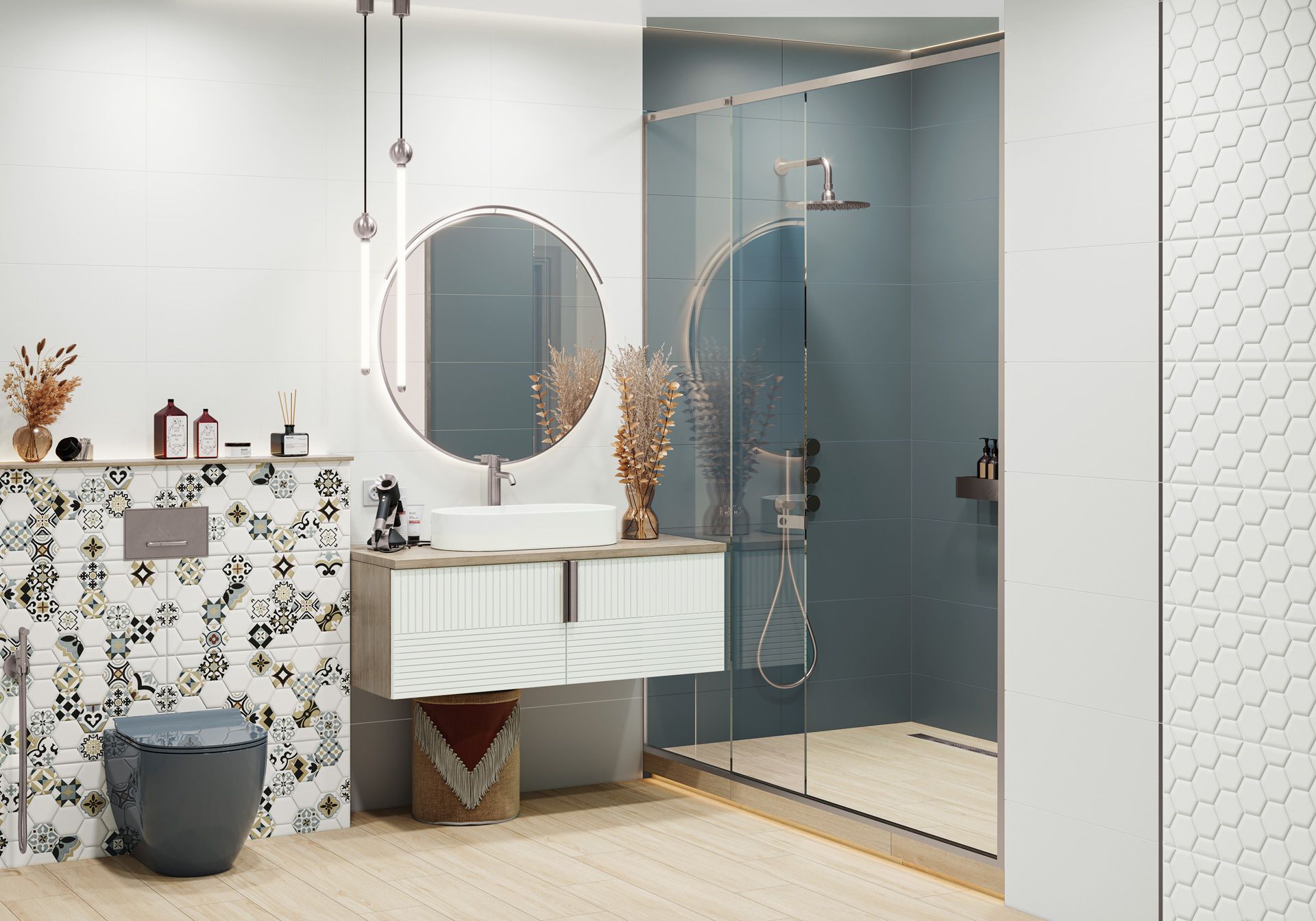 Edelweiss — коллекция, которая создает настроение. Формат плитки 300х600 мм с матовой поверхностью. Серия состоит из ровных базовых плиток в моноколорном синем и белом цвете, рельефной плитки сот в тех же цветах и белого декоративного массива на рельефе сот с узорами пэчворк и эффектом патины. Дополнением коллекции служат керамические бордюры черного, платинового и золотого цвета. Также гармоничным сочетанием к этой коллекции станет плитка в виде деревянных плашек с пропилами из коллекции Aurea и керамодоска в формате 200x900 мм. Такое количество элементов коллекции поможет создать индивидуальное пространство в современном стиле.