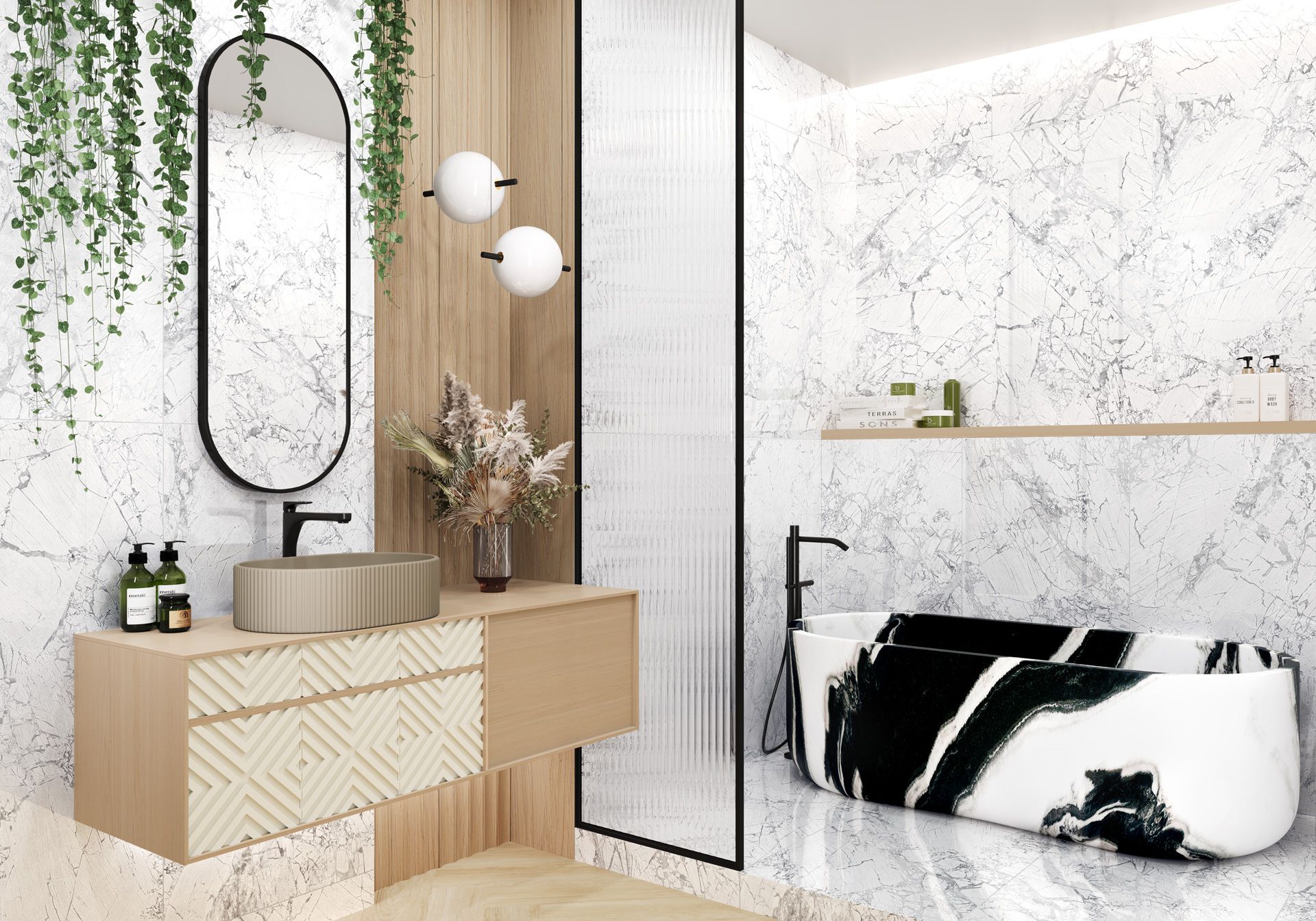 Вдохновением для наших дизайнеров при создании полированного керамогранита Everest формата 600х1200 мм стала красота одной из самых высоких вершин в мире, величественные горные пики, обрамленные снежными шапками и ледниками. Такой дизайн — это современная альтернатива калакакаттам, такая текстура будет благородно и современно смотреться в гостиной в качестве панно или при зонировании помещения, а ванная комната с отделкой таким материалом впишется в любой стиль и прослужит долгое время.