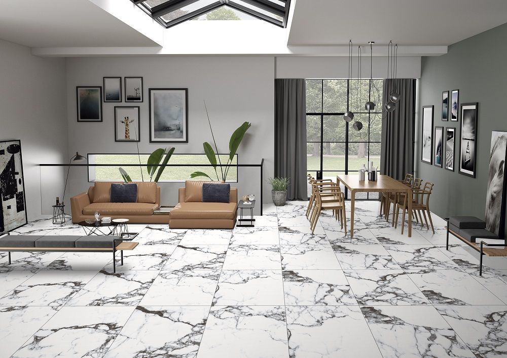 Поверхность структурированная, карвинг. Карвинг - это легкий рельеф на поверхности керамогранита, который наносят по специальной технологии в процессе производства. Рельеф в виде небольших неровностей подчеркивает прожилки мрамора и таким образом придает плитам вид натурального камня.