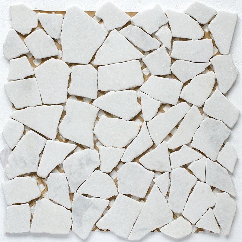 Мозаика SPLIT WHITE MATT (StarMosaic, Китай) из кусочков натурального белого мрамора. Эффект кладки из колотого камня.